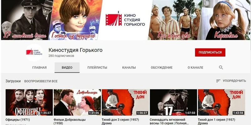 Киностудия имени Горького запустила Youtube-канал Киностудия имени Горького запустила в собственный Youtube-канал с подборкой фильмов к 75-летию Победы.