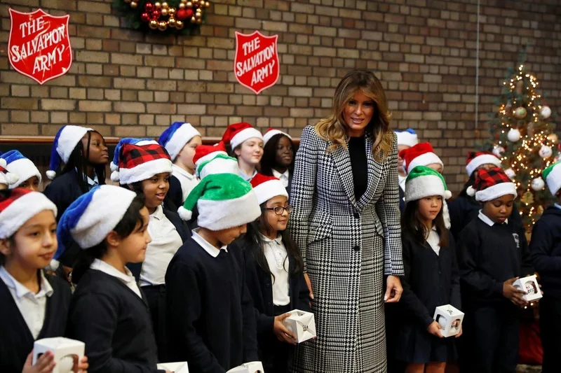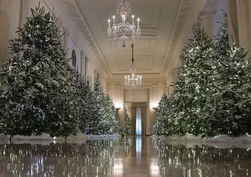 Первая леди США показала украшенный к Рождеству Белый дом Основные цвета декораций в этом году - красный, зеленый и золотой. , Общество