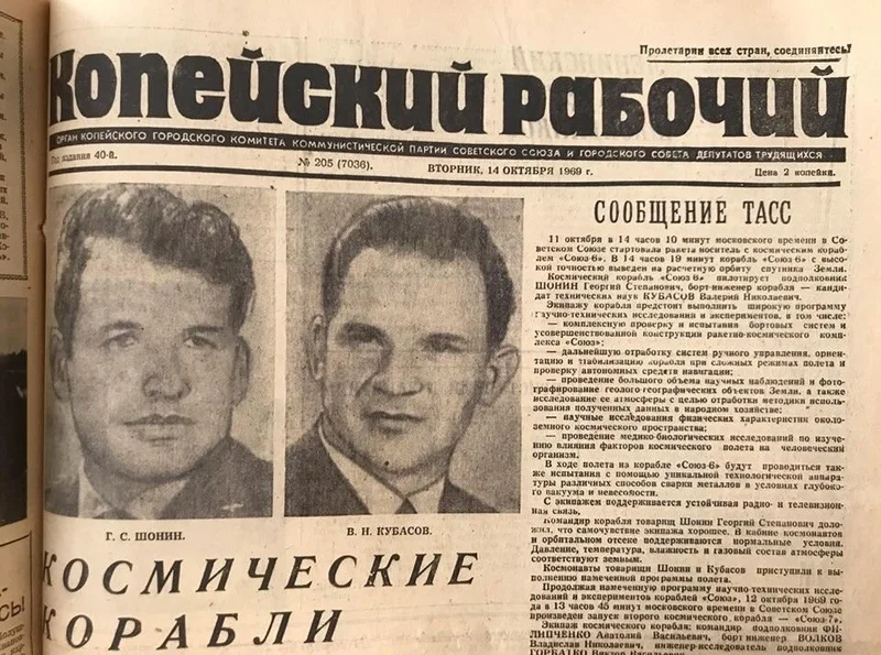 Историческая публикация "Копейского рабочего" 50 лет назад на орбиту был выведен космический корабль «Союз-6». , Общество