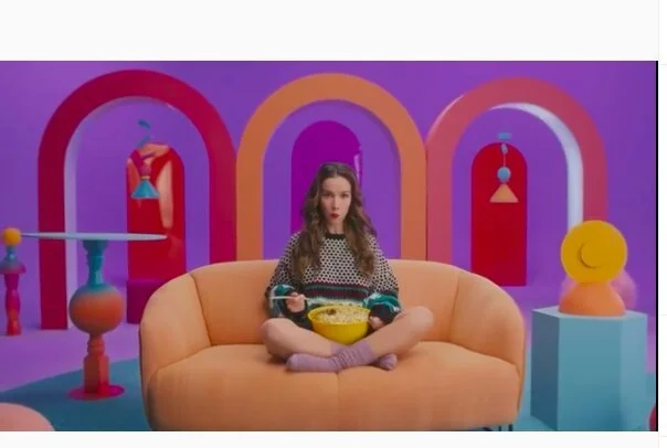 На телеканале "Суббота" появился новый рекламный ролик, главной героиней которого стала любимая многими россиянами иностранка — Наталия Орейро. Она, уютно расположившись на диване, смотрит сериал "Дикий ангел" со своим участием. На коленях у Орейро стоит большая салатница с "оливье". Певица ест салат большой пластмассовой ложкой.