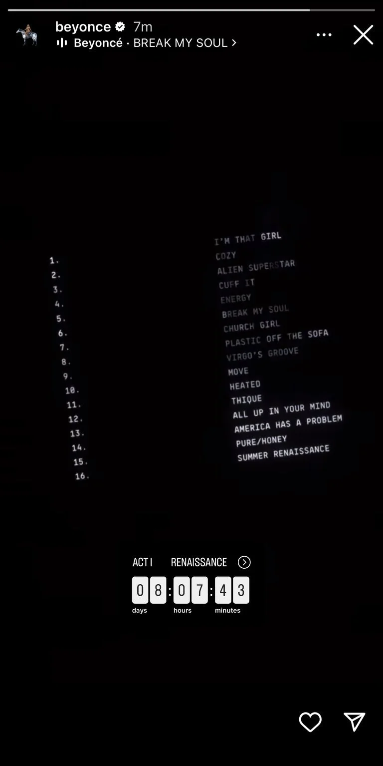 Трек-лист альбома Бейонсе "Renaissance", июль 2022. Источник фото: соцсети.