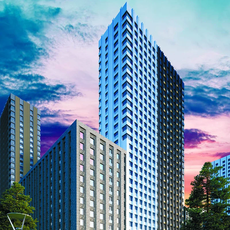 Покупателям на выбор будет предложено 895 квартир, включая 231 однокомнатную квартиру площадью 28,5 до 41 кв.м, 607 двухкомнатных, площадь которых варьируется от 41 до 59,4 кв.м, а также 57 трехкомнатных квартир площадью от 63 до 74,5 кв.м. Все квартиры предлагаются в двух вариантах отделки.