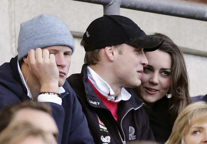 Принц Гарри, принц Уильям и Кейт Миддлтон. Февраль 2007 г. Источник фото: Richard Heathcote/Getty Images.