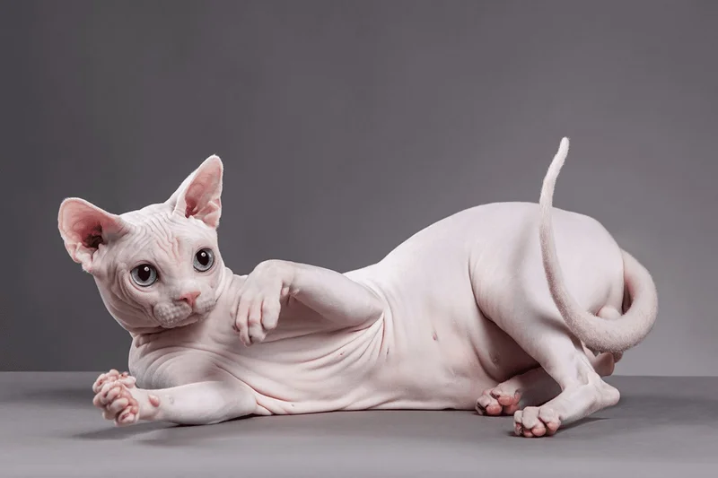 Это очень популярная порода кошек без шерсти. У него компактное и мускулистое тело, покрытое очень тонким слоем шерсти, почти незаметным для глаз. Важно обеспечить тепловой комфорт в доме, чтобы она не простудилась. Кроме того, нужно ежедневно дезинфицировать кожу сфинкса, чтобы не нарушался баланс его натуральных масел. Это ласковая и в равной степени властная кошка.