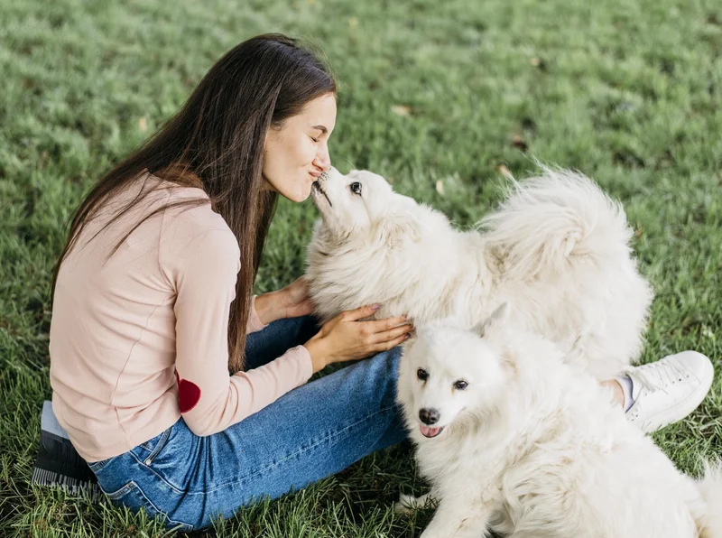 Счастливая женщина с собаками. Источник фото: freepik.com