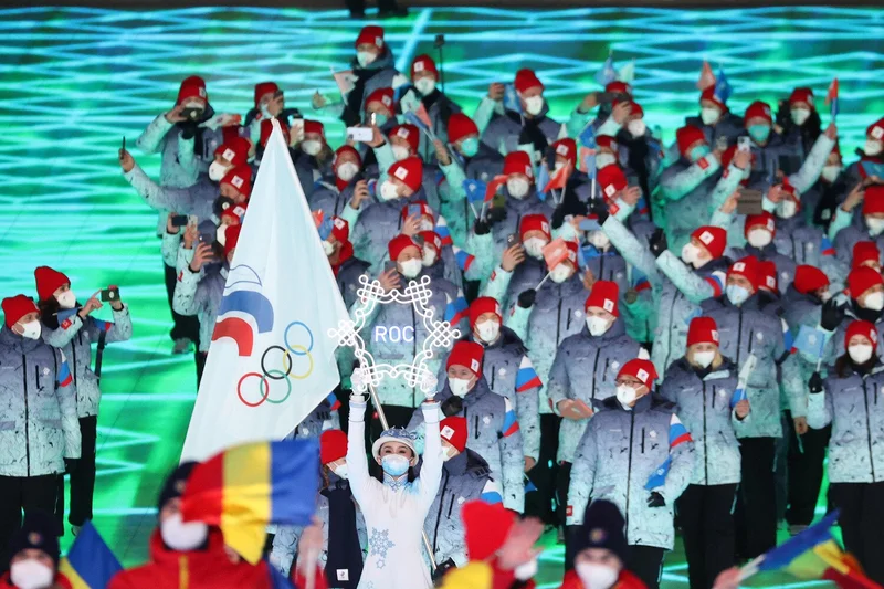 Сборная России вышла на стадион открытия зимней Олимпиады под флагом ROC в форме с узнаваемым триколором. Знаменосцами выступили Вадим Шипачев и Ольга Фаткулина.