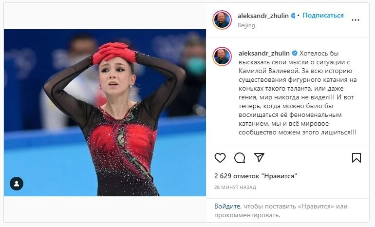 Александр Жулин о Камиле Валиевой Источник фото: (с марта 2022 года соцсеть запрещена в РФ)