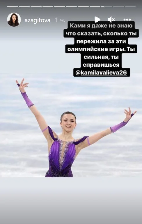"Ками, я даже не знаю, что сказать, сколько ты пережила за эти олимпийские игры. Ты сильная, ты справишься", - написала Загитова Камиле.