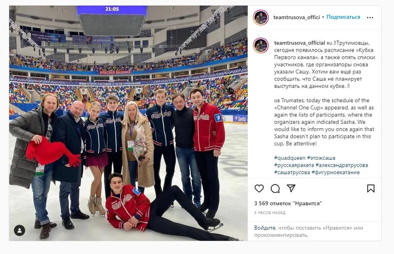 В Инстаграм *(принадлежит организации, признанной в РФ экстремистской с 21 марта 2022 года и запрещена на территории РФ)е фан-команды Александры Трусовой появилось сообщение о том, что фигуристка пропустит Кубок Первого канала по фигурному катанию.