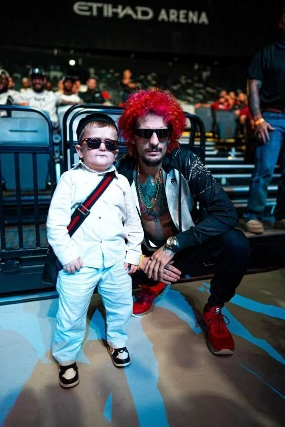 За несколько часов до турнира американец встретился с российским блогером Хасбиком, который приехал в Абу-Даби с командой Хабиба для поддержки российских бойцом.