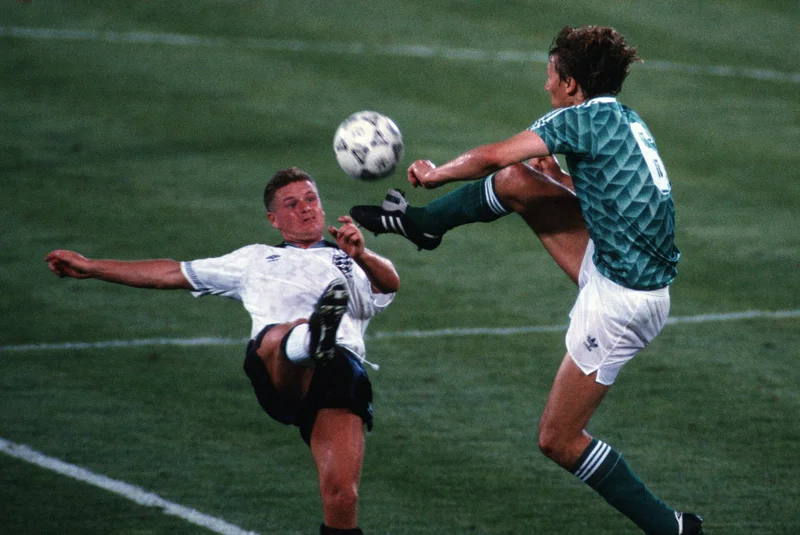 Пол Гаскойн в борьбе за мяч на чемпионате мира 1990 года Источник фото: Bongarts / Gettyimages.ru