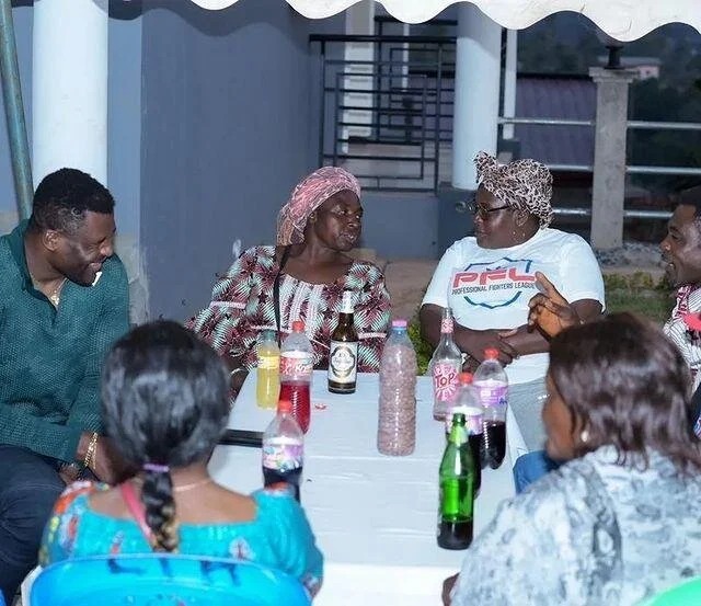 Среди гостей была женщина, явно одетая в футболку PFL, в то время как другие присутствующие женщины были одеты в традиционную африканскую одежду.