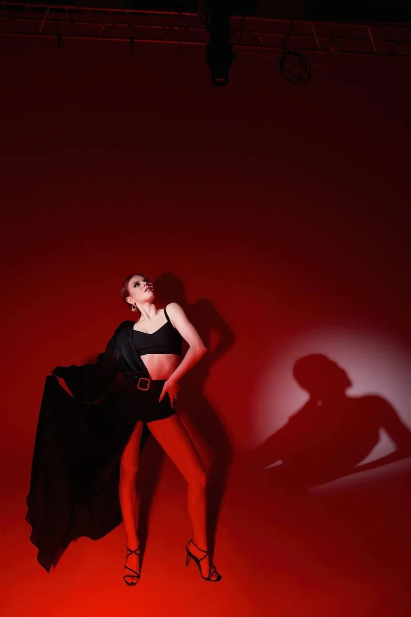 В одном из образов фигуристки сочетались черный и красный цвета.