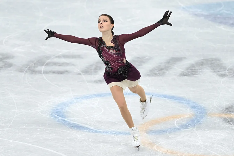 Бордовое платье Анны Щербаковой (произвольная программа, Олимпиада-2022)