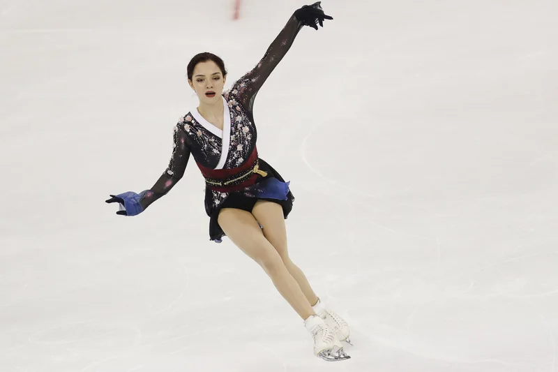 Костюмы до Олимпиады-2018 часто встречались в образах Загитовой. Самое первое подобное платье фигуристка донашивала за другой ученицей Этери Тутберидзе – Евгенией Медведевой.
