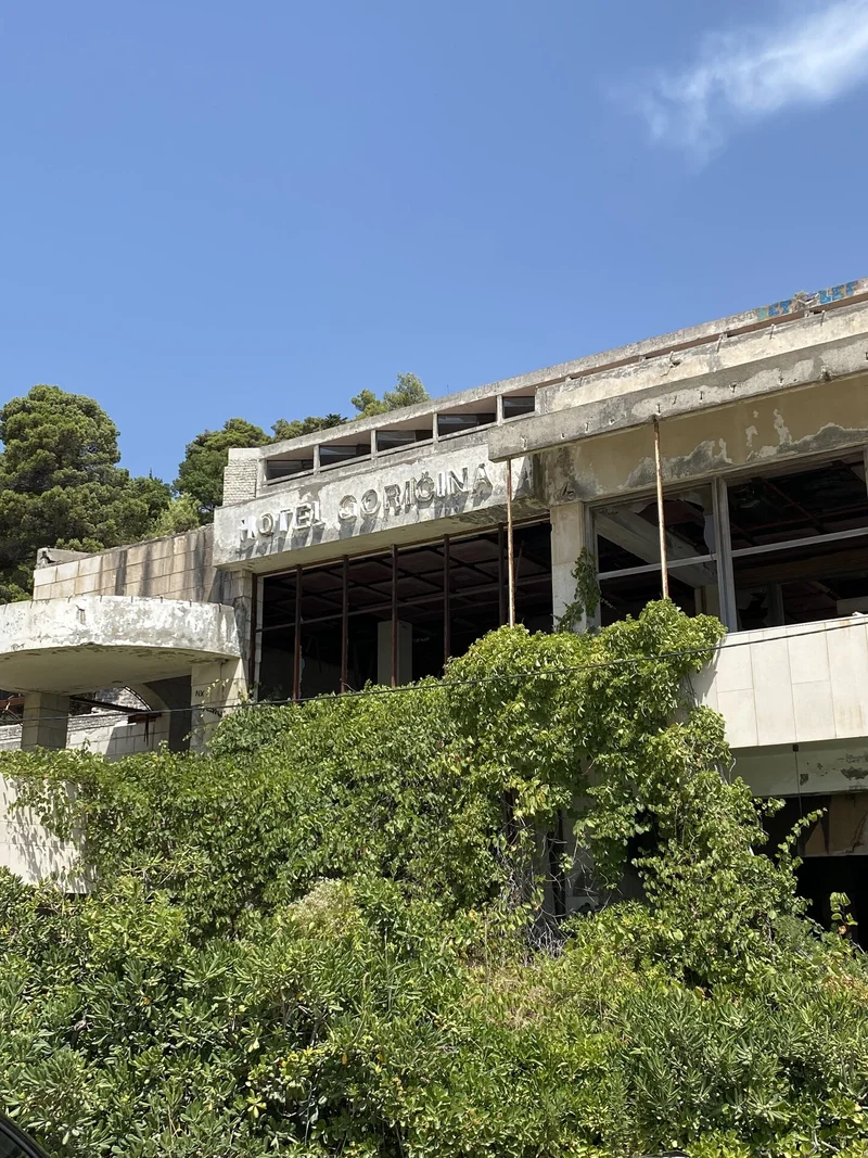 В тот день, когда я подошла к развалинам с моря, то увидела название одного из зданий – Hotel Goricina, вернувшись в отель я стала гуглить название и тогда-то и узнала, что видела – это был заброшенный и разрушающийся фешенебельный отельный комплекс, который и носил свое название в далекие шестидесятые – Grand Hotel Kupari.