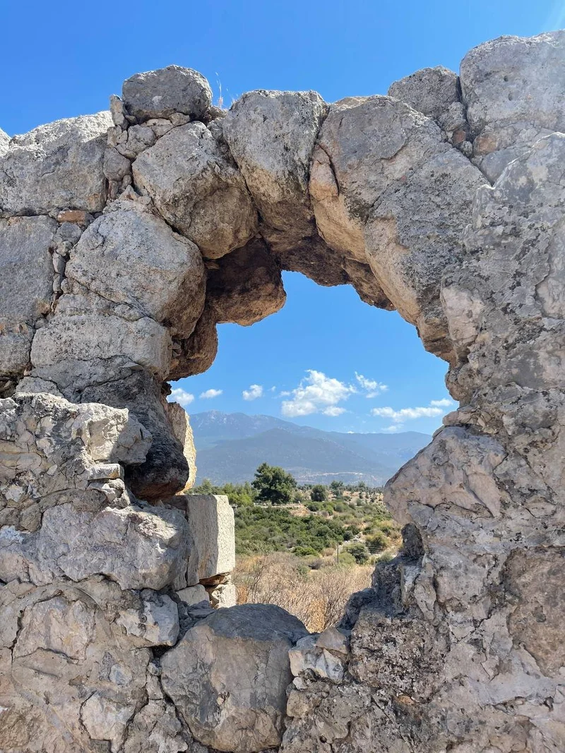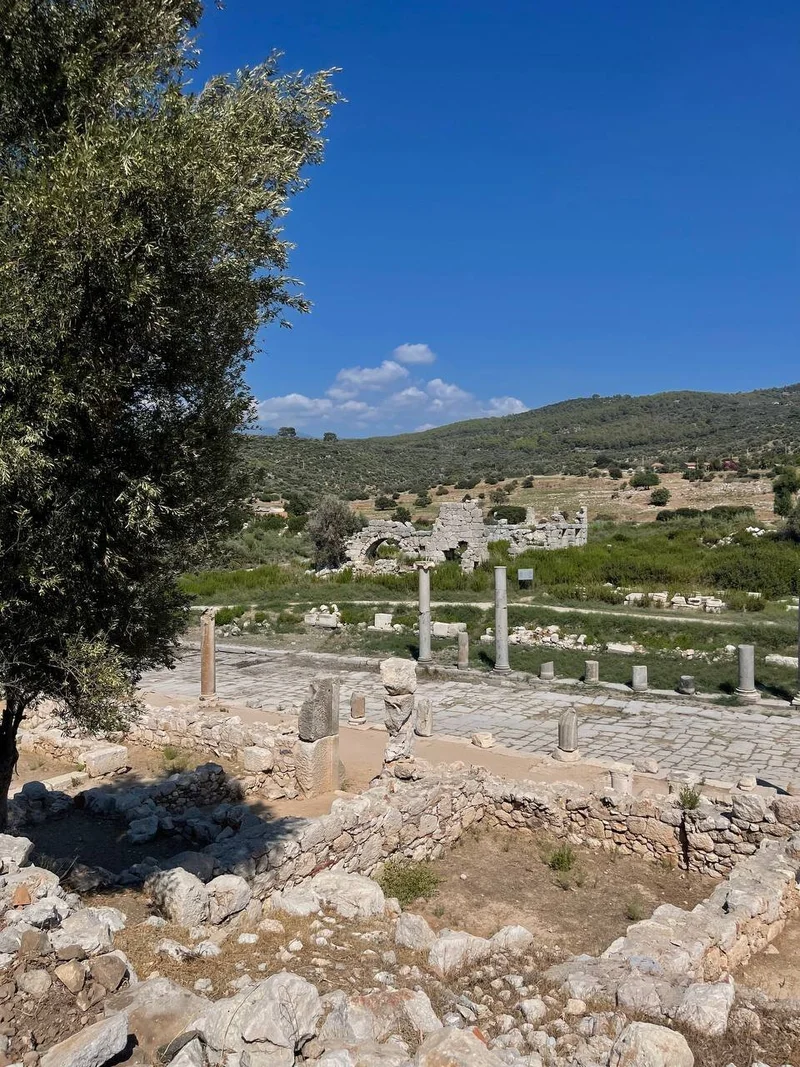 Самые первые признаки жизни людей на этой территории были отнесены к 7 веку до нашей эры. Город переживал несколько периодов: персидский, эллинистический, римский, византийский, чему свидетельствуют найденные при раскопках артефакты. Он раскопан немного лучше, чем Ксантос, есть дорожки для туристов и таблички с описаниями, что есть что.