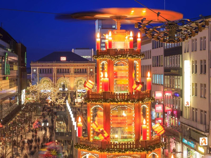 Сразу три рождественских рынка привлекают посетителей в центр Ганновера.На самом известном рынке Старого города, расположенном вокруг Рыночной церкви, есть карусели и около 120 киосков с кулинарными и рождественскими товарами. На корте для игры в мяч "Финская рождественская деревня" встречает посетителей фирменными блюдами, такими как лосось, приготовленный на открытом огне. Исторический рынок приглашает в средневековый Ганновер с торговцами и киосками.