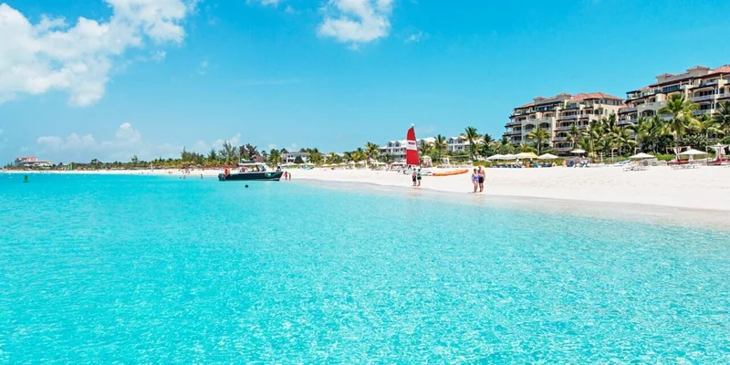 "Вода настолько кристально чистая, что трудно поверить, что она настоящая, с сотнями сине-зеленых оттенков и пляжами с белоснежным песком. Так говорит один из путешественников, ступивших на эту британскую заморскую территорию к северу от Карибского моря, между Гаити и Доминиканской Республикой. Этот впечатляющий пляж протяженностью 5 километров с редкими волнами расположен на третьем по величине острове Провинденциалес, который является частью национального парка принцессы Александры. Дайверам нравится погружаться в их обширный коралловый риф, будут впечатлены и любители закатов.