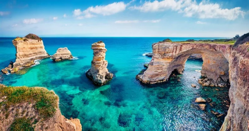 Один из самых красивых пляжей Апулии, самый сокровенный секрет юга Италии. В Торре-дель-Орсо находится один из лучших пляжей в Европе, известный благодаря “дуэ сорель” ("две сестры") из-за двух больших скальных образований, которые расположены на его берегу. Перед нами небольшая бухта недалеко от Отранто с мелким песком, окруженная соснами и дюнами, с которой никогда не хочется уходить.
