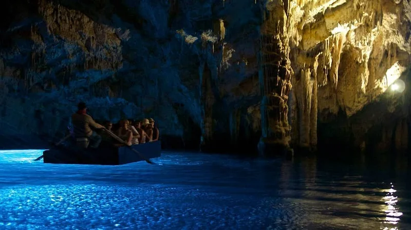 Название этого красивого грота дано из-за цвета его вод из-за солнечного света, проникающего через трещину. Помимо созерцания изумрудно-зеленого зрелища моря, в этом месте вы можете увидеть сталактиты и сталагмиты, колонны высотой до 10 метров и керамические ясли, погруженные в его воды в 1956 году.