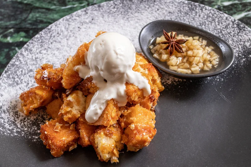 Кайзершмаррн с миндалем, изюмом и ванильным мороженым Источник фото: Пресс-служба «Балчуг Кемпински Москва»
